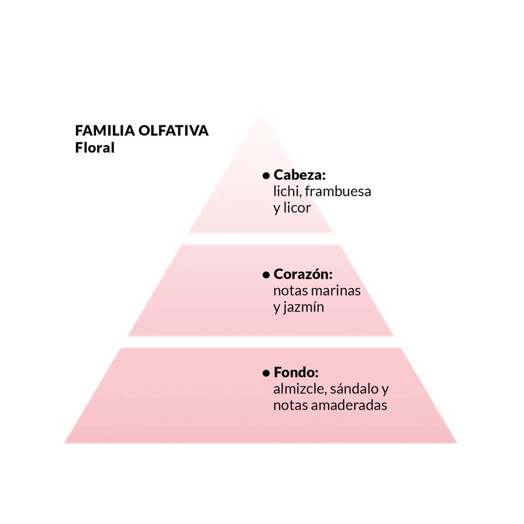 Sos la protagonista de cualquier fiesta. Esta fragancia es un cocktail de libertad y actitud. Energía pura y efervescente que hace vibrar el cuerpo para llevar la noche a nuevos límites.