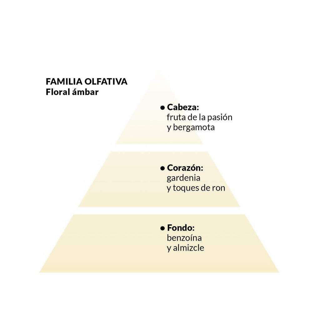 Esta fragancia magnética y estimulante transmite el embriagador glamour que te caracteriza. Dulce, amaderada y con las notas exóticas de la fruta de la pasión, para que muestres toda tu actitud VIP, esa que te da acceso a lo más exclusivo de la vida.