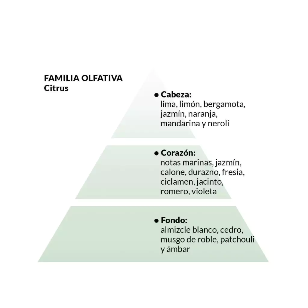 Una ola explosiva, fresca y estimulante que llena tus sentidos. Una fragancia pura y bien natural, para hombres seductores y auténticos