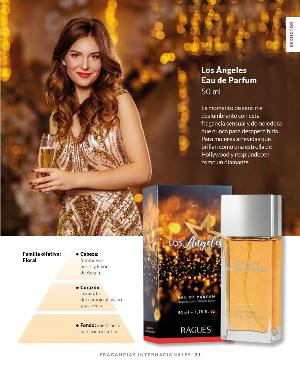 Las Notas de Salida son frambuesa, neroli y limón de Amalfi (lima de Amalfi); las Notas de Corazón son jazmín, flor del naranjo africano y gardenia; las Notas de Fondo son miel blanca, pachulí y ámbar.